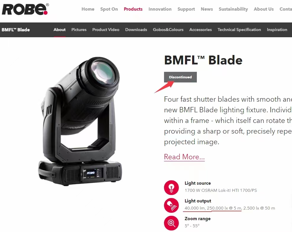 In 2014, ROBE launched BMFL, which uses a 1700W bulb with a luminous flux of 40000lm.
