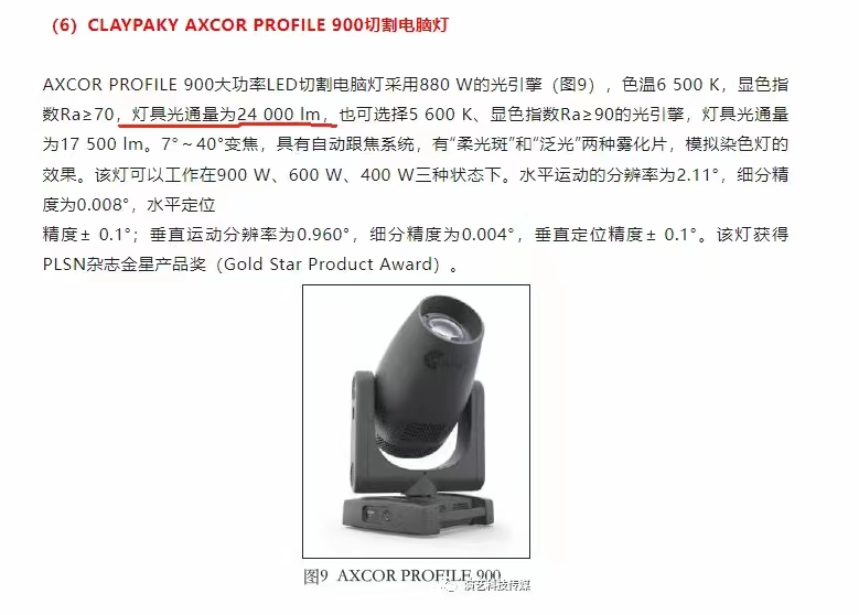 In 2018, CLAYPAKY launched AXCOR PROFILE 900, which uses LED modules with a luminous flux of 24,000lm; followed by the subsequent 1000W LED profile lighting, the luminous flux rose to 35,000lm; and in 2024, it exceeded 50,000lm; the optical density of LED chips continues to increase, making LED The luminous flux of profile lighting has gone from being close to that of traditional light sources to completely surpassing it.