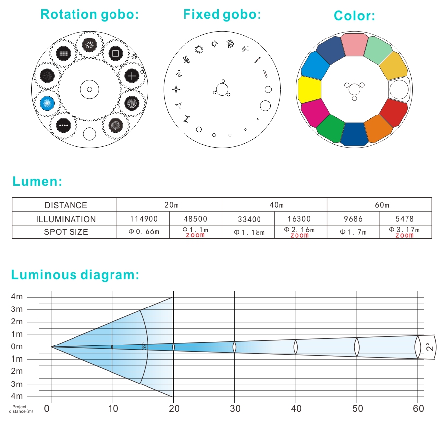 Gobo size diameter:14.9mm ,image diameter:10mm;