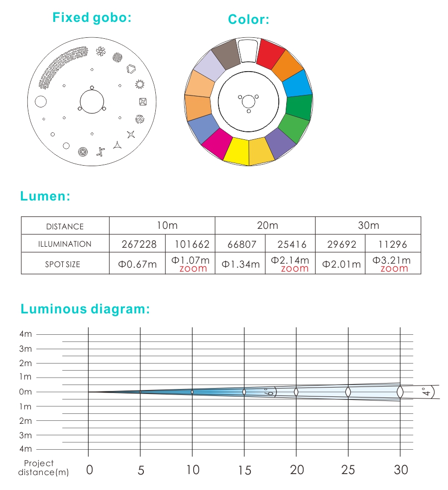 Fixed gobo : 14 gobo + white.