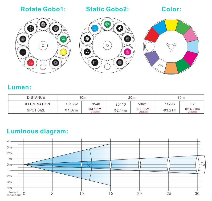 Gobo size diameter:14.9mm ,image diameter:10mm.