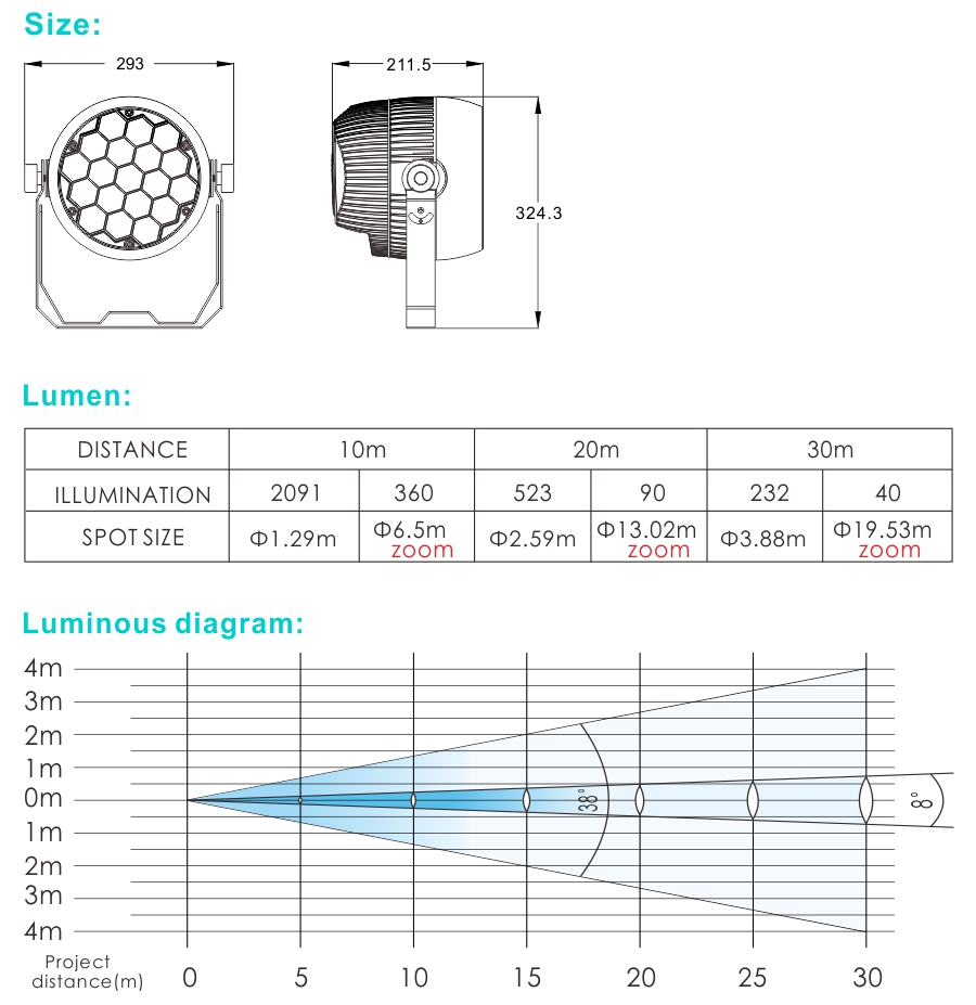 This product is different from the traditional LED par light , it can bring a clear outline, small angle without flooding, using leading silicone light guide technology, and jointly developed with France Gaggione. On the basis of LM285, the moving head device is removed and single point single control is cancelled. LP285 is more cost-effective. If you understand it carefully, it is a bright focusing par light.