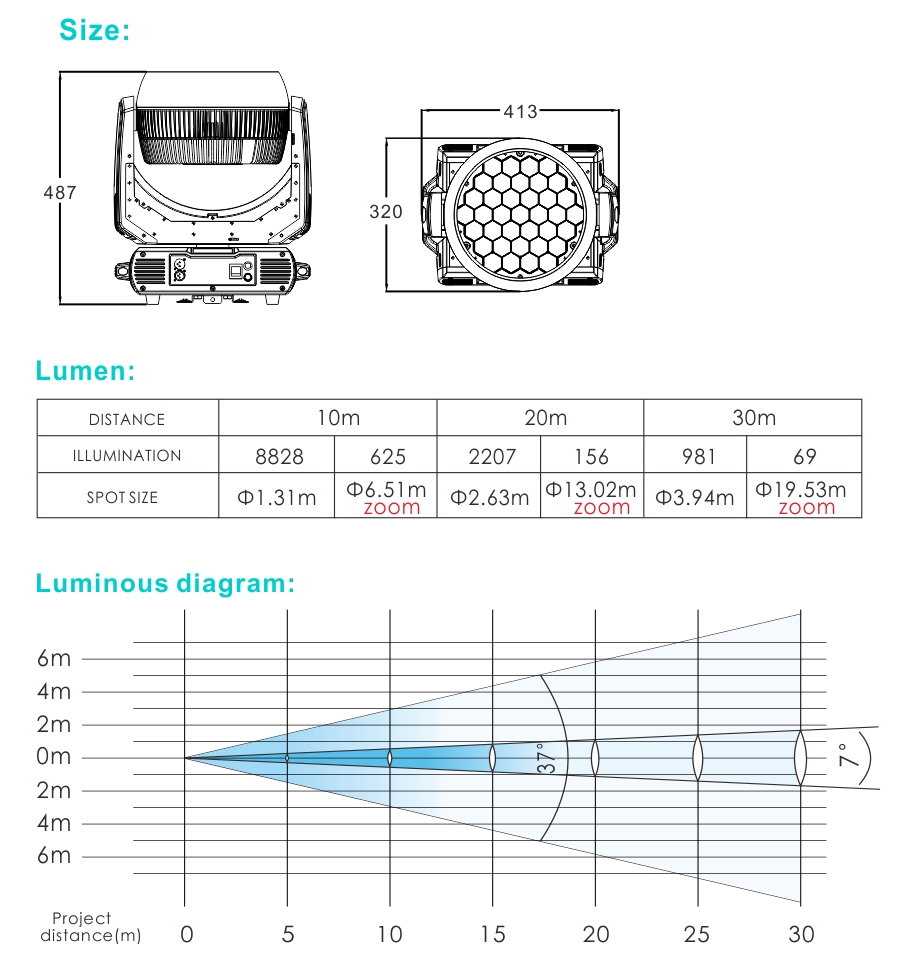 Feature 4 :This wash zoom uses high-density heat-dissipating aluminum, which has good heat dissipation and ultra-low noise, which is unexpectedly favored by theaters.