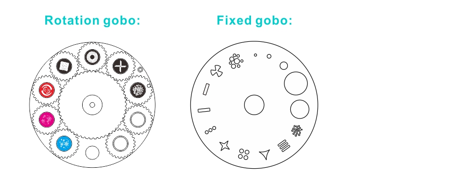 Rotation gobo: 7 gobo+ white,Replaceable.