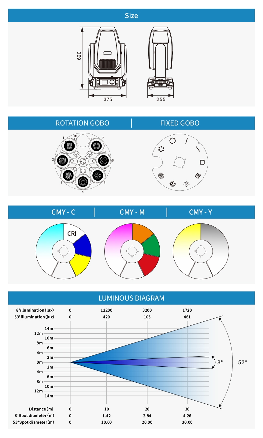 Illuminance at 10m:9900lux,minimum spot 1.35m