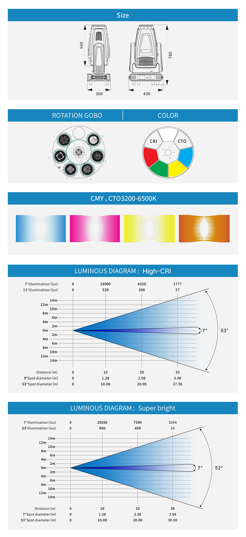 Rotation gobo: 6 gobo+ white, changeable;