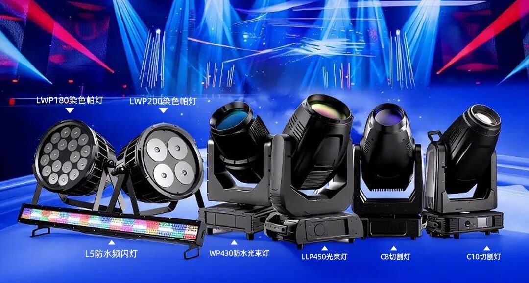 产品矩阵持续发力,六款明星产品脱颖而出,成为热销标杆:WP430防雨光束灯以强悍的室内与户外适配性赢得青睐,LWP180/LWP200染色帕灯用细腻光色点亮多元场景,LLP450光束灯凭借轻巧高亮成为舞台焦点,L5长条频闪以动感光影激活现场氛围,而C8、C10两款LED切割灯更是凭借轻量化设计与超高光效,成为中大型室内外演出的首选,用技术实力印证"实用为王"的产品理念。