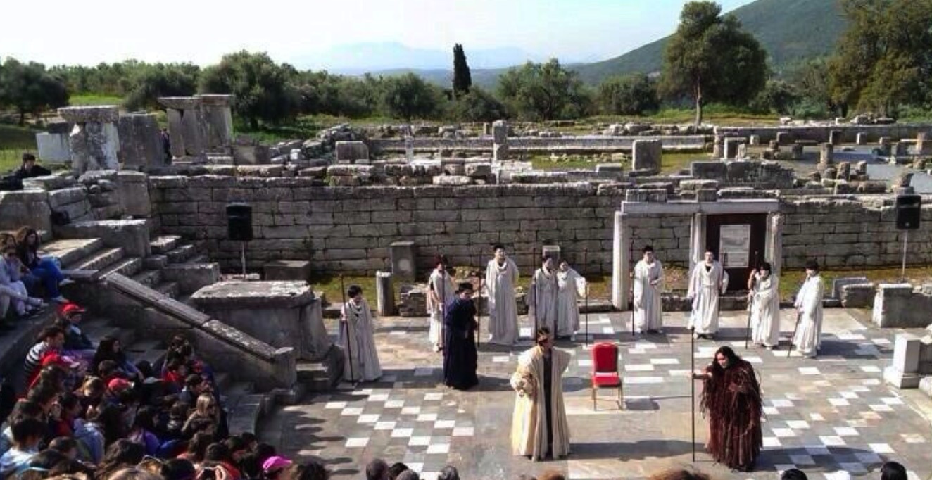 上图为:古希腊露天演出活动场景再现