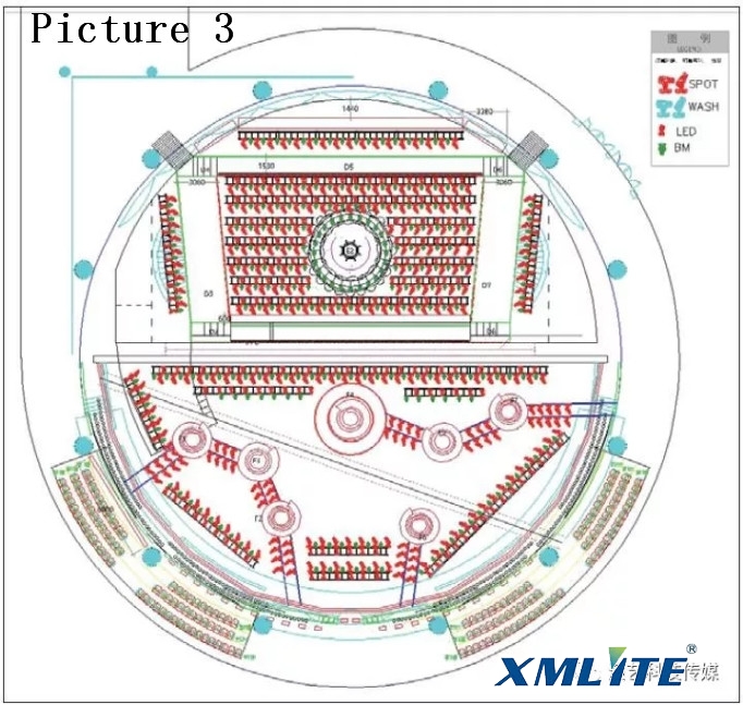 The picture 4 is created by the use 115 pieces of moving head Profile lights.