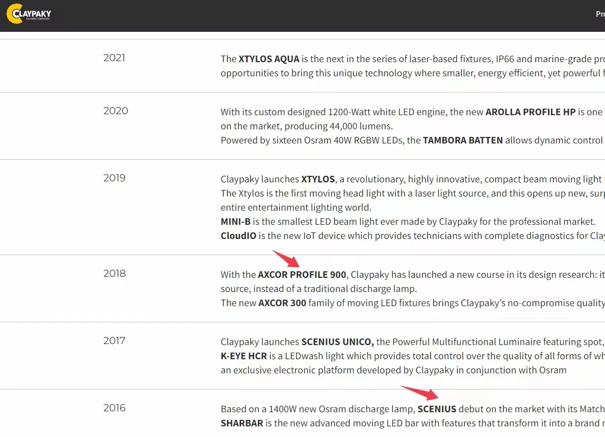 In 2016, CLAYPAKY launched SCENIUS, which uses a 1400W high CRI lamp.