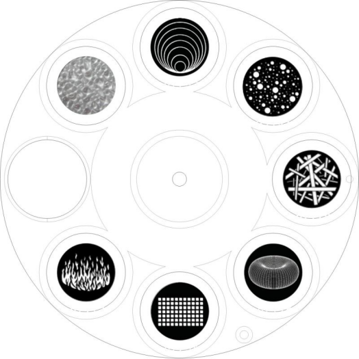 Rotating Gobo Wheel: 7 Gobos + Open