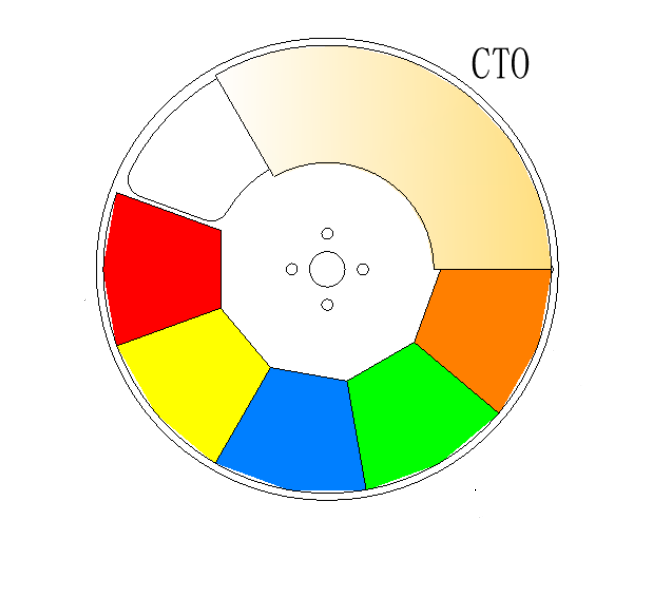 Color Wheel: 5 Colors + White, CMY Continuous Color Mixing, CTO Color Temperature: 2500-6500K