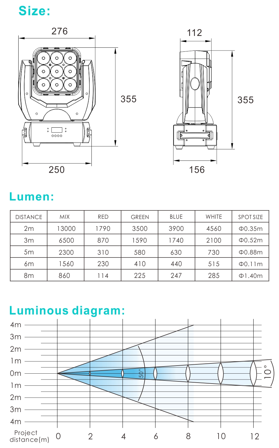 Featuring with 9pcs high brightness 15w RGBW 4-in-1 LEDs,