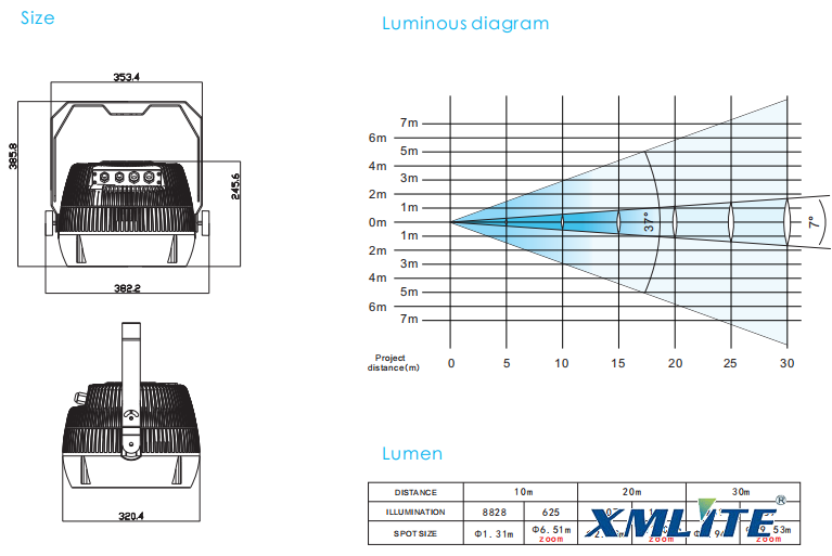 Beam angle : 7.9-3.8°