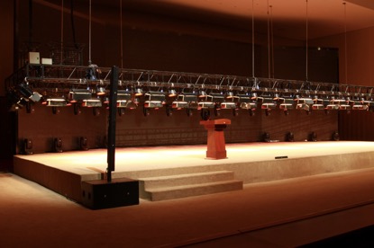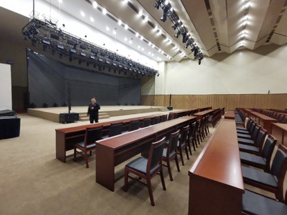 The picture above is: the installation and debugging site of lamps and lanterns Among them, the professional lamps installed in the central area of the perception experience are XMLITE Lighting: 660W LED profile light and Beam 260W moving head . The lighting layout is reasonable and consistent, which provides an important guarantee for stage presentation.